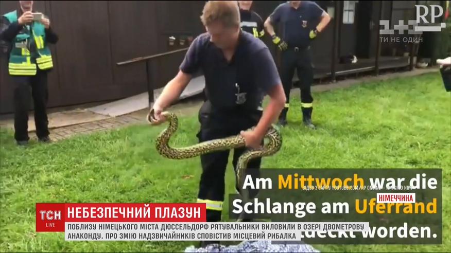 Першим у водоймі поблизу міста Дюссельдорф довжелезного плазуна помітив місцевий рибалка, який і сповістив пожежників. Тим довелося кілька днів чекати зручної нагоди. Упіймали анаконду, коли вона вилізла з озера погрітися на сонці. Наразі змія перебуває під наглядом спеціалістів.