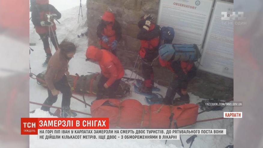 Вони лише кількасот метрів не дійшли до рятувального поста. Іще двоє - з обмороженими руками і ногами - в лікарні. А четверо їхніх товаришів дві ночі чекали порятунку на вершині гори. Спускати їх було вкрай ризиковано: температура впала до мінус 20 градусів, видимість - нульова. Як сталося, що 8 досвідчених туристів знехтували попередженням про погіршення погоди - у сюжеті.