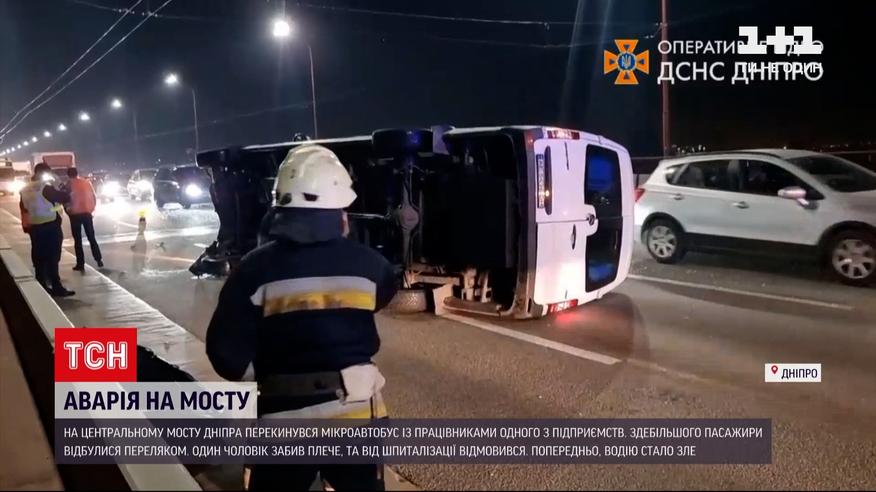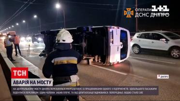 Новини Дніпра: на центральному мосту перекинувся бус із працівниками одного з підприємств