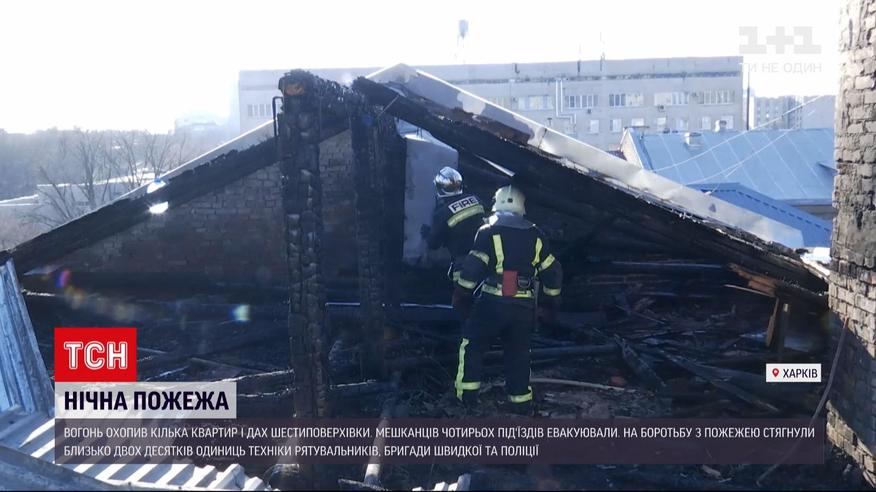 Новини Харкова: у жилому будинку проти ночі спалахнуло на верхніх поверхах п'ятиповерхівки