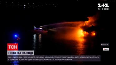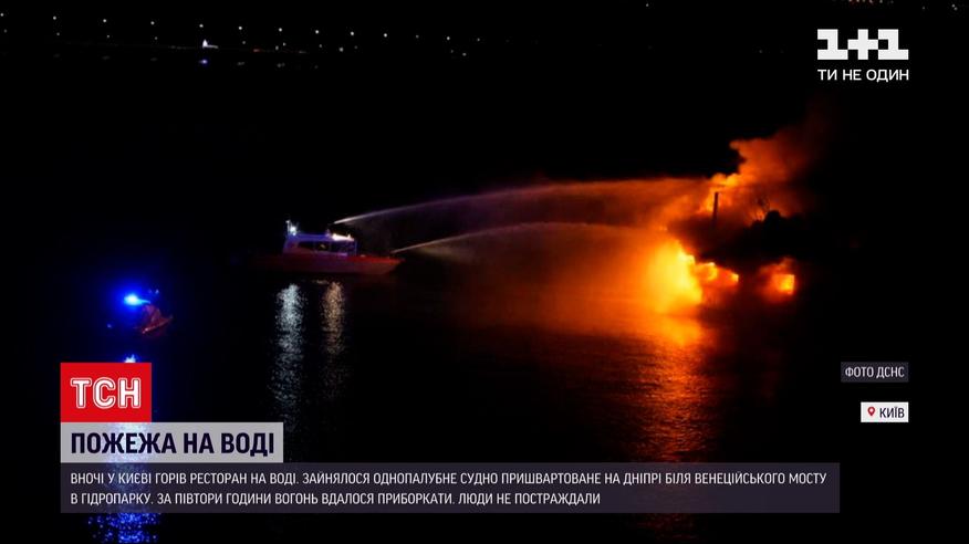 Вночі у Києві горів ресторан на воді. Зайнялося однопалубне судно, пришвартоване на Дніпрі біля Венеційського мосту в Гідропарку. Коли на місце прибули рятувальники, вогонь уже охопив дах будівлі. Свідки розповіли, що загорілося на кухні, але на момент займання, відвідувачів у ресторані не було. Плавучий ресторан гасили з пожежного катера.