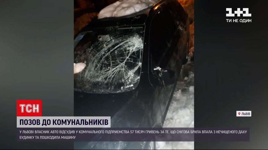 У Львові водій відсудив майже шістдесят тисяч гривень у комунальників. Минулої зими на його автівку впала брила снігу і сильно пошкодила. Закрижанілий шмат злетів з даху триповерхового будинку, що перебуває на балансі місцевого комунального підприємства. Його працівники жодного разу в суд не з'явилися. Заявляють, сніг чистили, та брила могла гепнутися через відлигу і провини своєї у цьому не вбачають. Тож подаватимуть апеляцію.