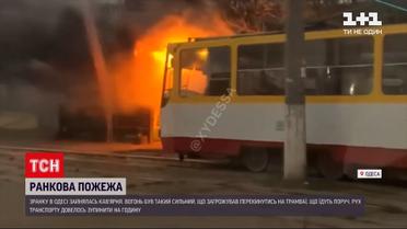 Пожежа заблокувала рух електротранспорту в Одесі. Зранку там загорілася кав'ярня. Поруч якраз йдуть трамвайні рейки - ними вагони рухаються одразу по кількох маршрутах. Полум'я було таким сильним, що проїхати повз нього не ризикнув жоден водій трамваю. Була небезпека, що вогонь перекинеться на вагони. Патрульним довелося повністю зупинити рух, доки вогнеборці гасили займання.