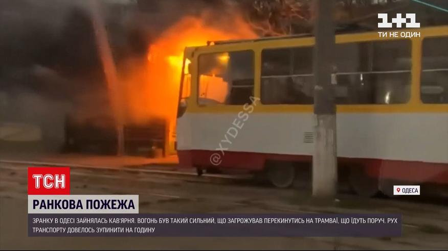 Новини Одеси: пожежа у кав'ярні заблокувала рух електротранспорту