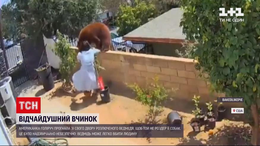 Сміливість на межі з божевіллям. Американка вигнала з власного двору розлюченого ведмедя, щоб той не роздер її собак. Відчайдушний вчинок зафільмувала камера зовнішнього спостереження. Ведмедиця із дитинчам залізли на паркан, а тамтешні собаки підняли ґвалт. Ведмежа одразу втекло, а от матір не злякалася й замахнулася на одного з псів. Це з вікна побачила власниця оселі. Вона вмить опинилася біля паркану й голіруч виштовхала ведмедицю.