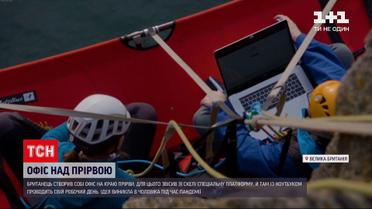Робота за екстремальних умов. Британець створив собі офіс на краю урвища. Для цього 34-річний Джейсон Гріффін звісив зі скелі на узбережжі Ірландського моря спеціальну платформу й там проводить свій робочий день. Ідея виникла у чоловіка під час пандемії, коли частину робітників у Британії перевели на дистанційний формат.