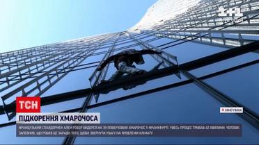 Новини світу: французький "Спайдермен" Ален Робер без страховки підкорив хмарочос у Франкфурті