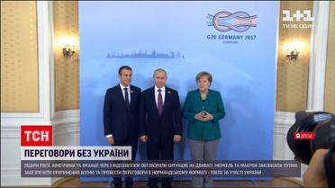 Про Україну без України. Лідери Росії, Німеччини та Франції через відеозв'язок обговорили ситуацію на Донбасі. Ангела Меркель та Еммануель Макрон закликали Володмира Путіна забезпечити припинення вогню та сприяти дотриманню Мінських угод. А також провести переговори в нормандському форматі - тобто за участю Києва.