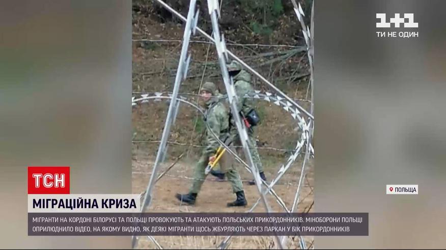 Мігранти на кордоні Білорусі та Польщі – провокують та атакують польських прикордонників. Міноборони Польщі оприлюднило відео, на якому видно, як деякі мігранти щось жбурляють через паркан у бік офіцерів. Крім того, за словами поляків, їхні білоруські колеги жодним чином не реагують на ситуацію. А часом і навпаки: допомагають мігрантам потрапити до Польщі.