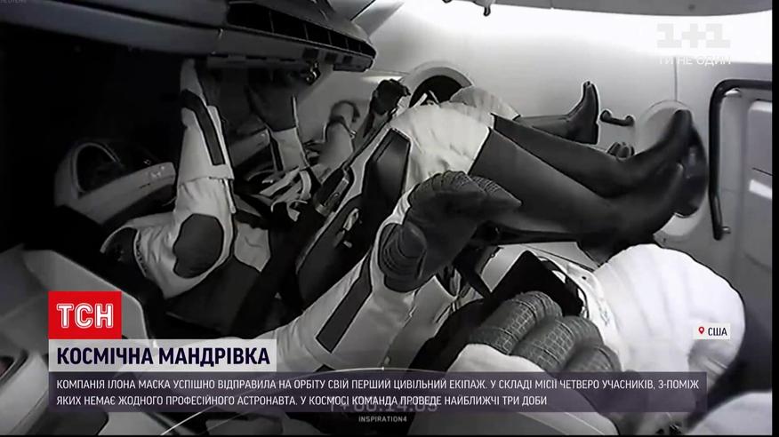 "Натхнення 4" - перша місія, до складу якої увійшли лише непрофесійні астронавти, відправилася у космос. Бізнесмен Джа-ред Айзек-ман, помічниця лікаря Хейлі Арсено, геологиня Сіан Проктор та інженер Кріс Семборскі. На орбіті землі - на відстані близько 575 кілометрів над рівнем моря - вони мають провести 3 доби. Старт відбувся із миса Канаверал у Флориді. За ним стежила уся Америка і ТСН.