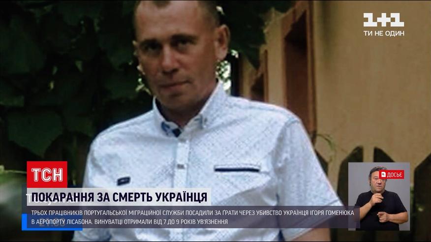 Трьох працівників португальської міграційної служби засудили на термін від 7 до 9 років в'язниці за побиття українця. Ця трагічна історія трапилася торік у березні. 40-річний Ігор Гоменюк прилетів до Лісабона у пошуках роботи. В аеропорту з'ясувалося - у нього прострочена віза й у в'їзді до країни йому відмовили. Чоловіка забрали до спеціальної кімнати для тимчасово затриманих й там сильно побили кийками та ногами. А потому лишили у кімнаті із кайданками на руках та численними переламами ребер. Травми виявилися несумісними із життям.