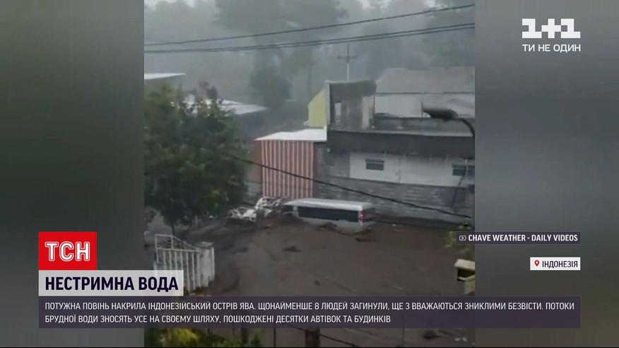Потоки багна, що змивають усе на своєму шляху. Потужна повінь накрила Індонезійський острів Ява. Уже відомо про щонайменше 8-ох загиблих. Іще 3 вважаються зниклими безвісти. Паводки на острові Ява почалися після рясних дощів. Із берегів повиходили місцеві річки й позатоплювали села. Потоки брудної води несуться із такою силою, що перед ними не можуть встояти ані машини, ані будинки. Людей вже потроху евакуйовують до тимчасових притулків.