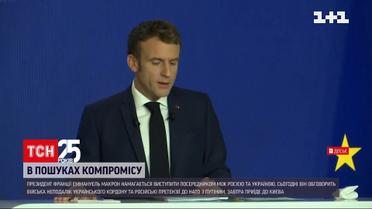 Вмовити Путіна на мир до Москви сьогодні рушив президент Франції Еммануель Макрон, західна преса одразу ж порівняла його з Саркозі, який в 2008-му, коли російські війська вторглися до Грузії, був посередником між Кремлем та Тбілісі. На які кроки в пошуках компромісу він готовий піти - президент не поточнив, але французьким журналістам Макрон заявив: треба бути реалістичними, однобічних заходів ми не досягнемо, важливо не допустити погіршення становища.