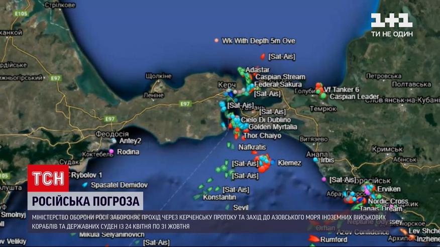 Тим часом, стало відомо про наміри Кремля частково перекрити для суден Керченську протоку. Чутки, про те, що Росія перекриває протоку для комерційного судноплавства з'явилися іще вчора. Втім, сьогодні, є тому вже і офіційні підтвердження. Щоправда мова не про комерційні кораблі, а про військові. Це документ-попередження від Міністерства оборони Росії. В ньому вказано з 24 квітня по 31 жовтня включно заборонити прохід через Керченську протоку іноземним військовим кораблям та державних суден.