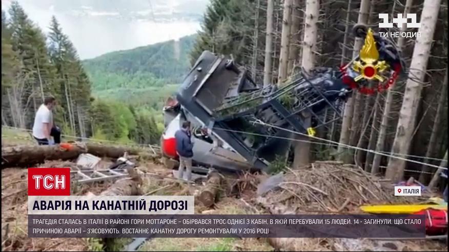 Аварія на канатній дорозі в Італії – там загинули 14 людей. Трагедія сталась в районі гори Моттароне – обірвався трос однієї з кабін. На момент трагедії всередині було 15 людей – серед них двоє дітей 5 і 9 років – їх у тяжкому стані доправили у лікарню, згодом одна дитина померла від отриманих травм. Що стало причиною аварії – з’ясовують.