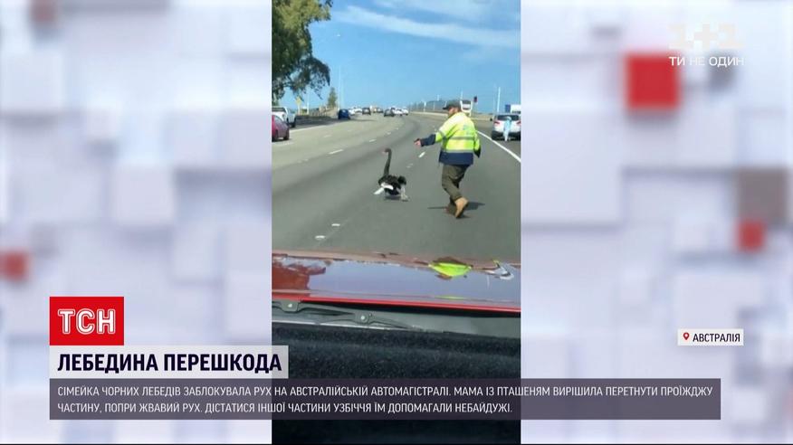 Сімейка чорних лебедів заблокувала рух на австралійській автомагістралі. Й одразу птахи стали зірками соцмереж. Лебідка разом зі своїм пташеням вирішила перетнути проїжджу частину, попри жвавий рух. Шоковані кермувальники фільмували усе на свої телефони. Та от дістатися іншої частини узбіччя пташиному сімейству усе ніяк не вдавалося. Тож водію однієї з вантажівок довелося одягнути світловідбивний жилет і супроводжувати їх разом з іншим небайдужим водієм через дорогу.
