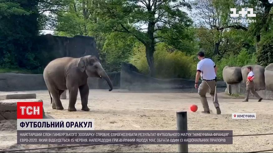 Футбольний оракул. Найстарший слон гамбурзького зоопарку спрогнозує результат матчу "Німеччина-Франція", який відбудеться вже 15 червня. Хто переможе – напередодні гри спробує здогадатися 41-річний слон Яшода. Перед ним поставлять коробку з двома національними прапорами. Який слон вибере, та країна, по ідеї, й має виграти. Якщо ж обидва, значить – нічия. Зараз слон цілими днями тренується: ганяє м`яча та знайомиться з прапорами.