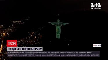 Новини світу: статую Ісуса Христа в Ріо-де-Жанейро підсвітили закликами про необхідність щеплень
