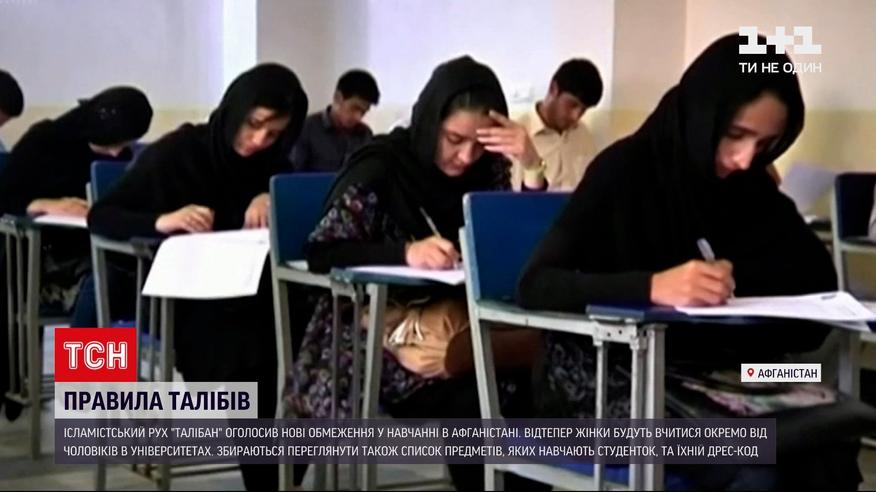 Дівчата окремо від хлопців. Ісламістський рух "Талібан" оголосив нові правила навчання в Афганістані. Відтепер в університетах жінки не зможуть вчитися в одних приміщеннях із чоловіками. Окрім того, переглянути збираються список предметів, які викладають студенткам, та їхній дрес-код - зокрема зобов'яжуть носити хіджаб. Запровадити сегрегацію за статтю хочуть також і в школах.