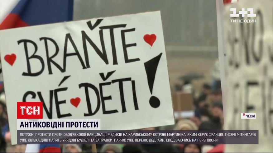 Більшість швейцарців на референдумі виступила за дійсну систему COVID-сертифікатів. 62% населення підтримали закон, за яким доступ до масових заходів мають лише ті, хто вакцинувався, одужав чи зробив тест на COVID. Тим часом на карибському острові Мартиніка, який належить Франції, уже понад тиждень не вщухають протести проти обов'язкової вакцинації медпрацівників. Тисячі протестувальників проти COVID-сертифікатів, обов`язкової вакцинації та інших обмежень зібралися і в Празі. Зокрема, людей обурила заборона різдвяних ярмарків.