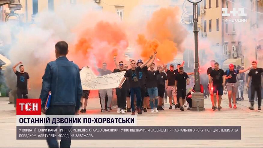 Останній дзвоник. В Україні лише від сьогодні починають прощатичся з навчальним роком. Тим часом у Хорватії, попри карантинні обмеження, старшокласники вже гучно відсвяткували. У багатьох містах спершу гуляли з фаєрами та банерами - так, що над вулицями висів густий червоний дим. А потім великими компаніями збирались у середмісті і продовжували веселитись. Поліція стежила за порядком, але гуляти молоді не заважала.