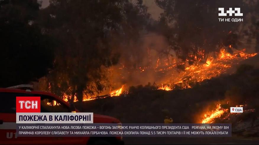 У Каліфорнії спалахнула нова лісова пожежа – вогонь загрожує ранчо колишнього президента США Рональда Рейгана. Саме в цьому маєтку він свого часу приймав королеву Єлизавету II та Михайла Горбачова. Пожежа охопила понад 5 з половиною тисяч гектарів і поки що її не можуть локалізувати.