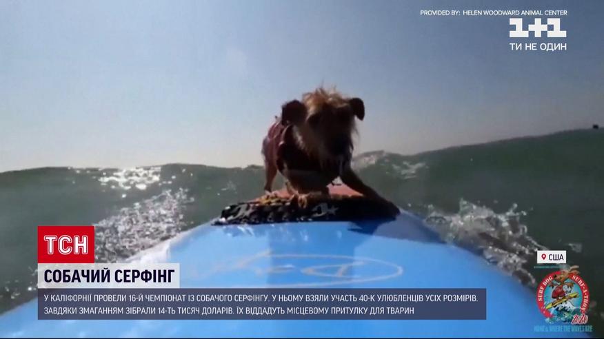 Чемпіонат із собачого серфінгу. У Каліфорнії ловили хвилю чотири десятки чотирилапих спортсменів. Можна було самотужки або з господарем, але завдання одне – якомога довше втриматися на дошці. Журі оцінювали тривалість заїзду, впевненість, маневреність та ентузіазм. Завдяки змаганням зібрали 14 тисяч доларів. Їх передадуть місцевому притулку для тварин.