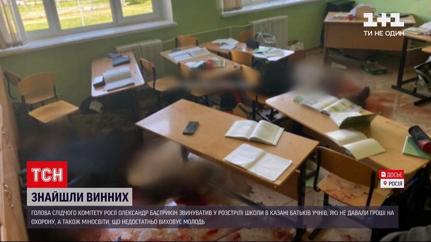 В розстрілі учнів у школі винні батьки. Голова слідчого комітету Росії встановив винних у трагедії в Казані, де 11 травня 19-річний Ільназ Галявієв, який закінчив школу кілька років тому, розстріляв двох вчительок і сімох дітей, ще 24 людини дістали поранення. Олександр Бастиркін заявив: це сталося тому, що школу належно не охороняли. Хоча угоду про охорону підписали, батьки відмовлялися давати на неї гроші. Розкритикував голова слідчого комітету і Міносвіти, яке недостатньо займається вихованням молоді.