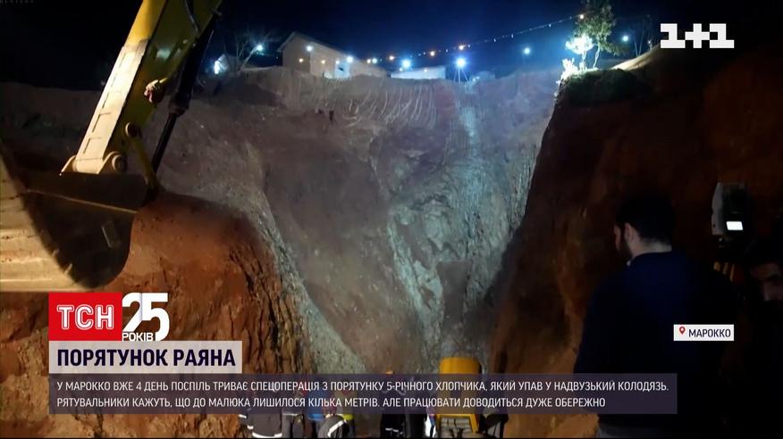 У Марокко вже четвертий день поспіль намагаються докопатися до 5-річного хлопчика, який провалився в надвузьке провалля. Рятувальники кажуть - натепер залишилося два метри, але ця відстань - найкритичніша. Бо може статися зсув ґрунту.