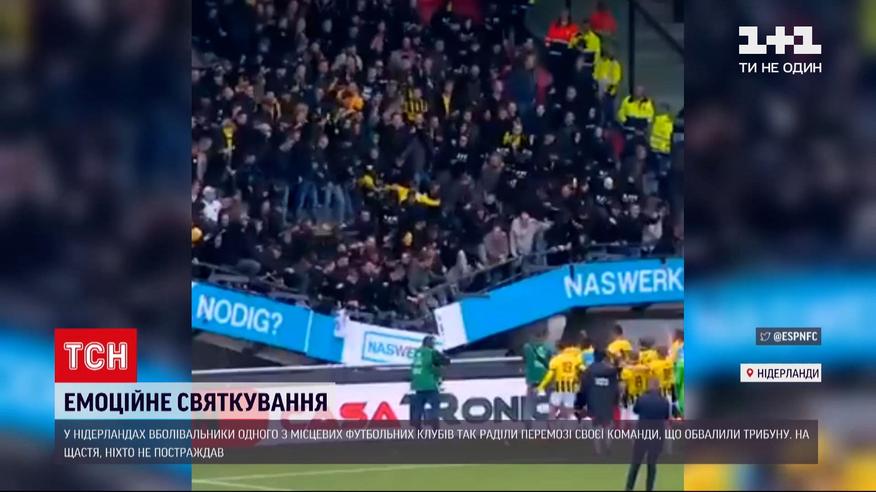 Емоційне святкування – у Нідерландах вболівальники одного з місцевих футбольних клубів так раділи перемозі своєї команди, що обвалили трибуну. Сотні людей одночасно почали стрибати, коли футболісти забили вирішальний гол, що конструкція не витримала і тріснула. На щастя, ніхто не постраждав.