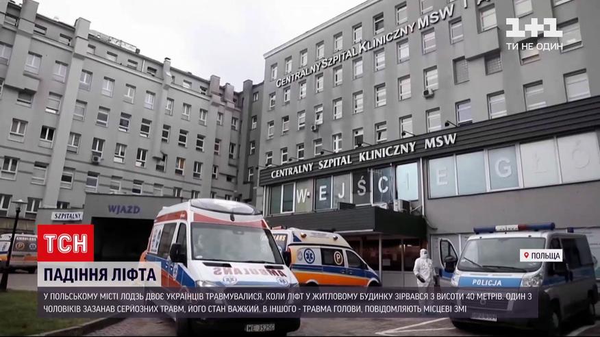 Двоє українців травмувалися у польському місті Лодзь. Там у житловому будинку зірвався ліфт з 15 поверху. Потерпілі - робітники, їм 41 та 42 роки. Вони саме фарбували шахту ліфта і стояли на даху кабіни, коли та полетіла донизу з висоти 40 метрів. Від неминучої смерті українців врятував гальмівний механзм ліфта - він таки спрацював. Один із чоловіків зазнав серйозних травм, його стан тяжкий. У іншого - травма голови, повідомляють місцеві ЗМІ.