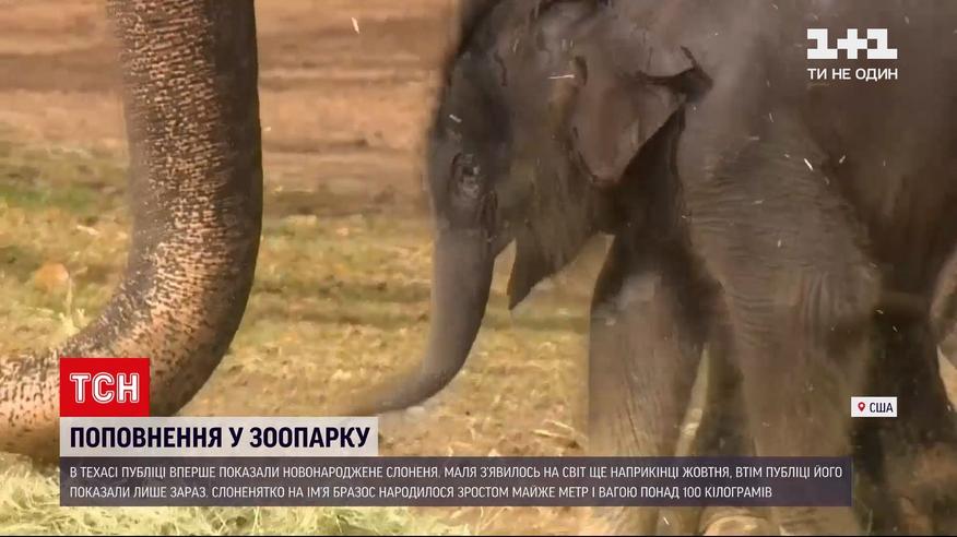 Поповнення у зоопарку – у Техасі показали новонароджене слоненя. Маля на ім’я Бразос народилося зростом майже метр і вагою понад 100 кілограмів. Працівники зоопарку кажуть, слоненя здорове, товариське і гарно росте.