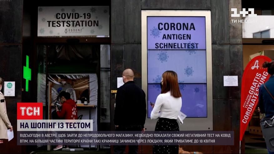 Новини світу: в Австрії, щоб зайти до магазину, необхідно перевіритися на COVID-19