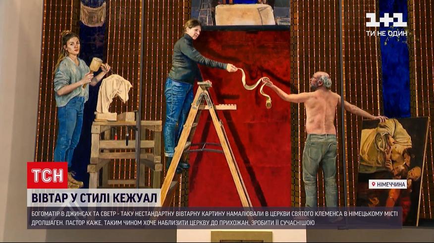 Богоматір в джинсах та светрі, а святі схожі на звичайних перехожих. Таку неcтандартну вівтарну картину намалювали в церкви Святого Клеменса в німецькому місті Дрол-шаген. На зображенні немає німбів та традиційних церковних риз – пастор каже, таким чином хоче наблизити церкву до прихожан, зробити її сучаснішою та зрозумілішою. Та не всі містяни оцінили такий новаційний підхід - частина прихожан обурюються, кажуть це зображення неповага до святих.