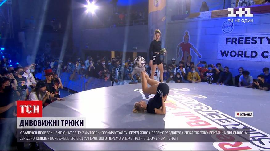 Дивовижні трюки зі звичайним м'ячем. В іспанській Валенсії провели Чемпіонат світу з футбольного фристайлу й обрали найкращих спортсменів. Дивлячись на карколомні трюки, важко уявити, скільки тренувань було у фристайлерів, щоб так володіти м'ячем. Перемогу серед жінок цьогоріч здобула зірка тік-току - британка Лія Льюїс. Її ровесник, норвежець Ерленд Фагерлі, став найкращим серед чоловіків.