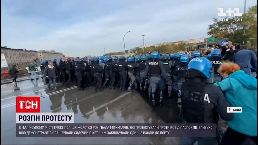 Водомети та сльозогінний газ. Італійська поліція жорстко розігнала мітингарів у портовому місті Трієсте, які протестували проти "ковід-паспортів". Близько тисячі демонстрантів – серед них і нещеплені докери, яких не пускають на роботу, – влаштували сидячий протест, чим заблокували один із входів до порту. Після кількох годин протистояння поліцейські розігнали мітинг.