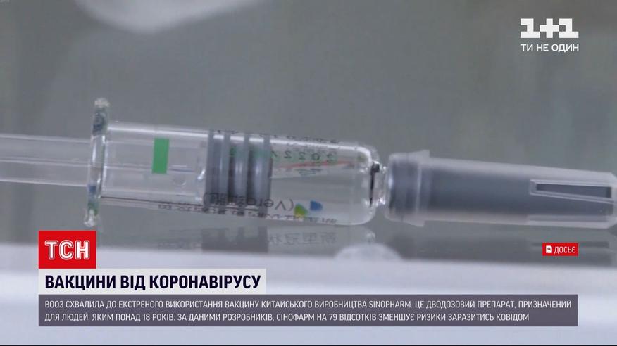 Всесвітня організація охорони здоров'я схвалила екстрене використання вакцини китайського виробництва "Сінофарм". Це перша вакцина китайського виробництва, рекомендована ВООЗ. "Сінофарм" - дводозовий препарат, призначений для людей, старших 18 років. За даними розробників, "Сінофарм" на 79 відсотків зменшує ризики заразитись коронавірусом. Ще один препарат китайського виробництва – "Сіновак", який закупила і застосовує Україна, поки що чекає схвалення від ВООЗ.