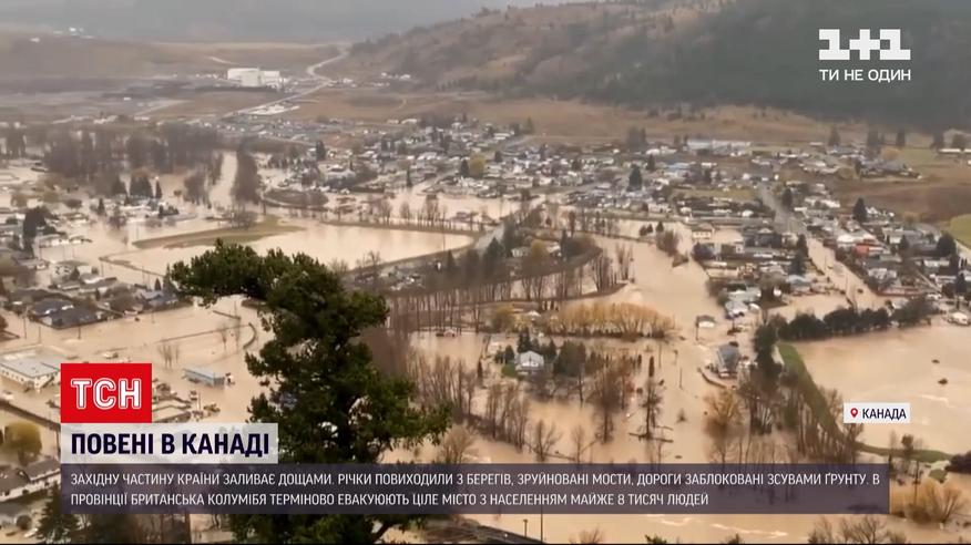 Повені в Канаді – західну частину країни заливає дощами. Річки повиходили з берегів, зруйновані мости, дороги заблоковані зсувами ґрунту. В провінції Британська Колумбія терміново евакуюють ціле місто з населенням майже 8 тисяч людей.