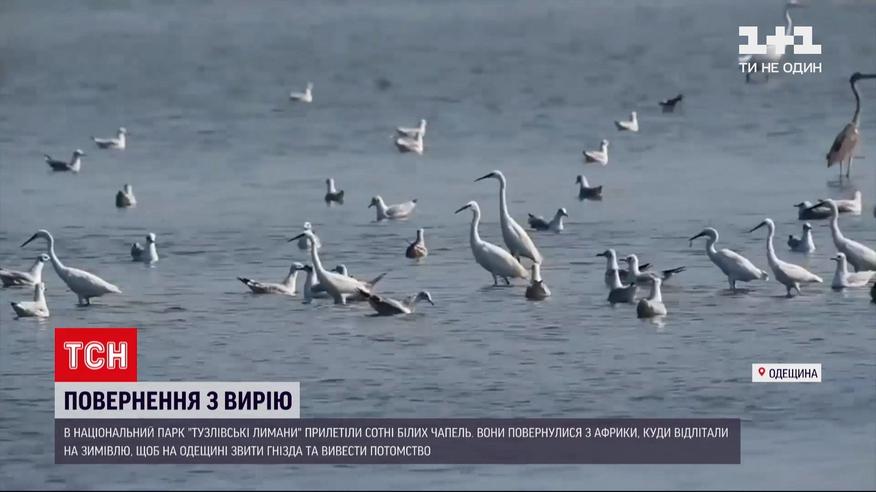 Повернулися з теплих країв. До національного парку "Тузлівські лимани", що на півдні Одеської області, прилетіли білі чаплі. Сотні птахів заполонили чи не увесь місцевий лиман. Вони зимували в Африці і як тільки відчули, що тепло не за горами, вирушили в місця, де впродовж кількох місяців зведуть гнізда та виведуть потомство.