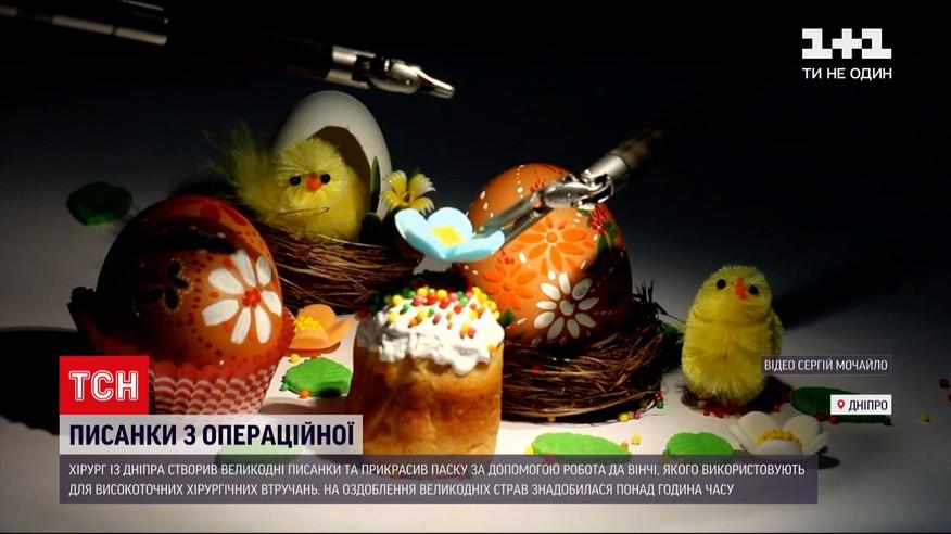 Писанки з операційної. У Дніпрі гінеколог-хірург у геть незвичний спосіб створив великодні наїдки. Прикрашання яєць та паски виконував робот "Да Вінчі". Ця система використовується для високоточних хірургічних втручань. "Руки" робота вміють набагато більше, ніж людські - зокрема, обертатися довкола та робити високоточні маніпуляції.