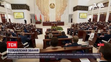 Київський національний університет імені Тараса Шевченка вперше в своїй історії позбавить людину звання почесного доктора вишу. Без звання залишиться самопроголошений президент Білорусі Олександр Лукашенко. Ректор університету заявив, три комісії ученої ради вже виробили відповідну процедуру, причини для позбавлення звання - порушення прав людини і неповага до держави Україна.