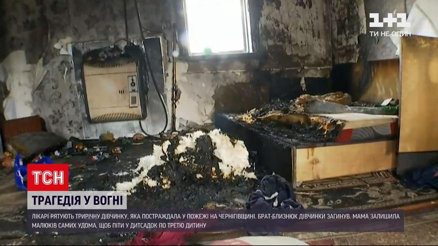 У Чернігівській області лікарі борються за життя трирічної дівчинки, яка постраждала під час пожежі у селі Високе. Її брат-близнюк загинув, а дівчинка дістала опіки третини тіла та отруїлася чадним газом. Нині дитина у реанімації, її стан важкий. Приватний будинок спалахнув, коли діти були вдома самі - їхня мама на 20 хвилин вийшла до дитячого садочка по іншу - третю - дитину. Рятувальники підозрюють, що осередком займання став диван, а причина - в пустощах з сірниками.