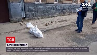 Новини України: львівські патрульні врятували дику качку і п'ятьох її малят