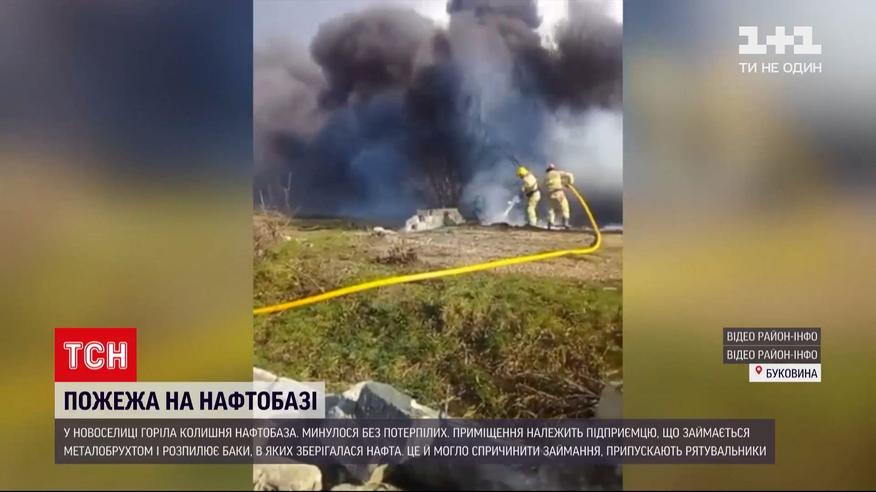 Колишня нафтобаза горіла на Буковині. Територію підприємства у Новоселиці охопив густий дим. Полум’я розійшлося на 200 квадратних метрів. Минулося без потерпілих. Зараз це приміщення належить підприємцю, що займається металобрухтом. Він розпилює металеві баки, у яких зберігалася нафта. Це й могло спричинити займання, припускають рятувальники.