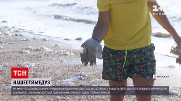 Азовське узбережжя атакують медузи. Нині - в спекотні дні - їх значно побільшало у морі. На курортах Запоріжжя комунальники ледь встигають збирати медуз на узбережжі. А працівники пансіонатів вивозять їх тачками і автівками. Обурюються такому нашестю і відпочивальники. Вручну викидають їх на берег, аби не заважали купатися. Але від медуз, що залишаються на березі, іде неприємний запах.