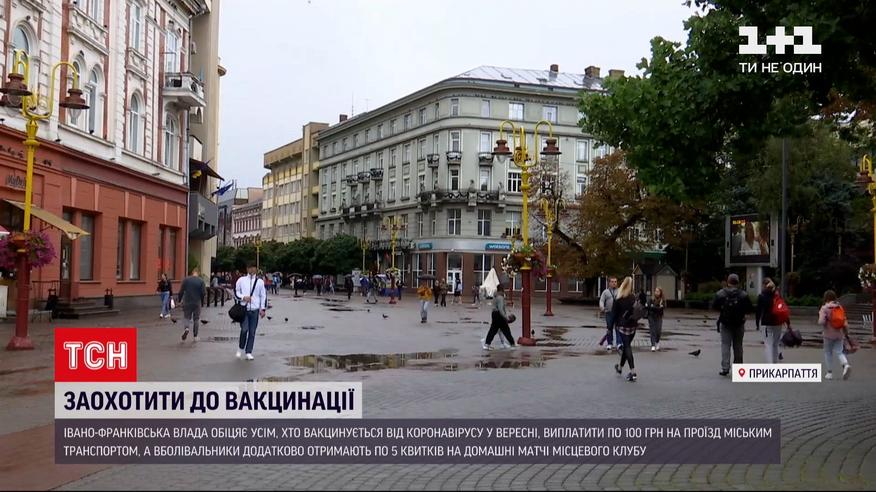 100 гривень на проїзд та квитки на футбол - на додачу. На Прикарпатті стимулюють вакцинацію. Влада Івано-Франківська оголосила - всім, хто упродовж вересня отримає щеплення від коронавірусу, виплатять по сотні на проїзд у міському транспорті. Бонусом для вболівальників стануть квитки на домашні матчі місцевого футбольного клубу. До заохочень імунізації тут вдаються не уперше.