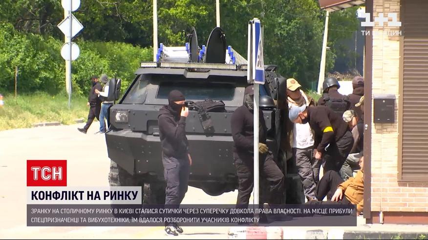 Підривали петарди та жбурляли димові пакети: конфлікт на Столичному ринку у Києві. Поліцію викликали працівники ринку. На той час до павільйонів уже зайшли молодики спортивної статури, до адмінбудівлі підігнали БТР. У "тітушок", які називають себе представниками охоронної фірми, були димові шашки та вибухові пакети. Спецпризначенці, вибухотехніки та оперативники прибули на місце: протистоянню сторін вдалося запобігти, потерпілих немає.