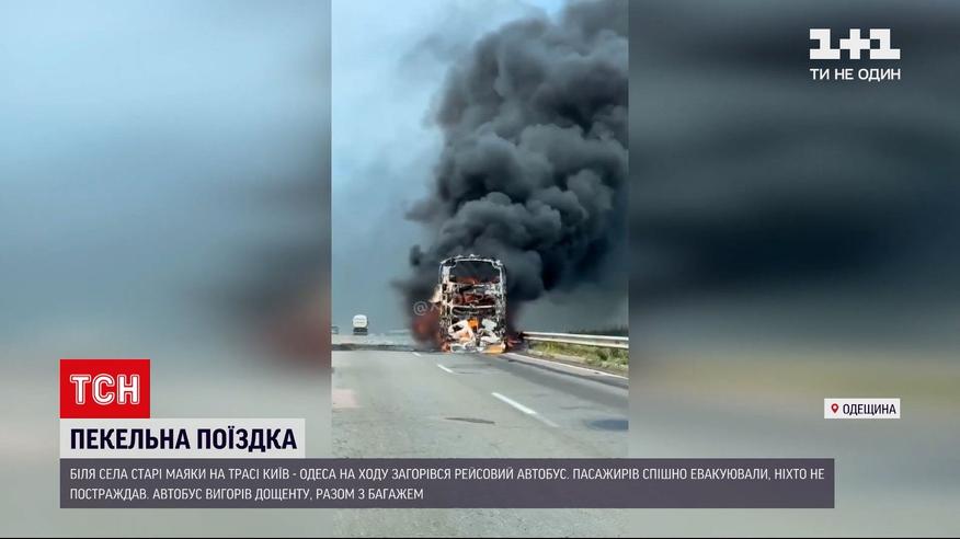 Новини України: на трасі "Київ-Одеса" просто на ходу спалахнув рейсовий автобус