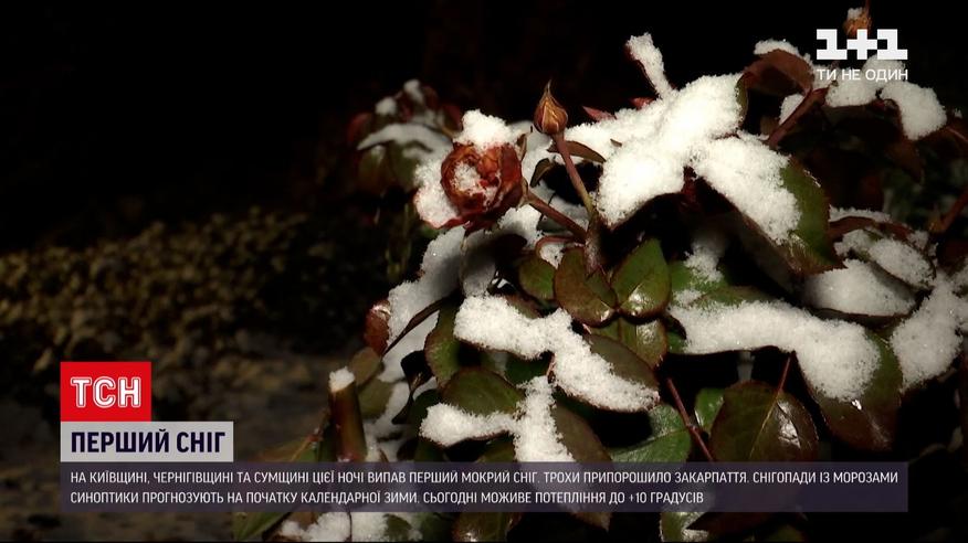 Із першим снігом сьогодні вранці вітали одне одного жителі чотирьох областей на півночі та сході України. У Сумській області насипало найбільше. Та нині снігу майже не лишилося, бо після двох морозних днів температура піднялася. Сьогодні синоптики прогнозують подекуди до +10 градусів.