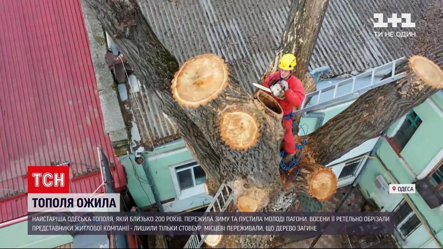 Найстаріша в Україні одеська тополя, яку ще пов'язують з Олександром Пушкіним, таки пережила зиму та пустила молоді пагони. Восени її ретельно обрізали представники житлової компанії. Дерево заввишки 25 метрів стало втричі меншим. Фактично залишили тільки стовбур. Місцеві гіди, що водять до тополі екскурсії, переймалися, що такої варварської підрізки пам'ятка природи не витримає і загине. Врятувати старовинне дерево вдалося спільними зусиллями озеленювачів з Одеси й Києва. Вони законсервували зрізи спеціальним розчином.
